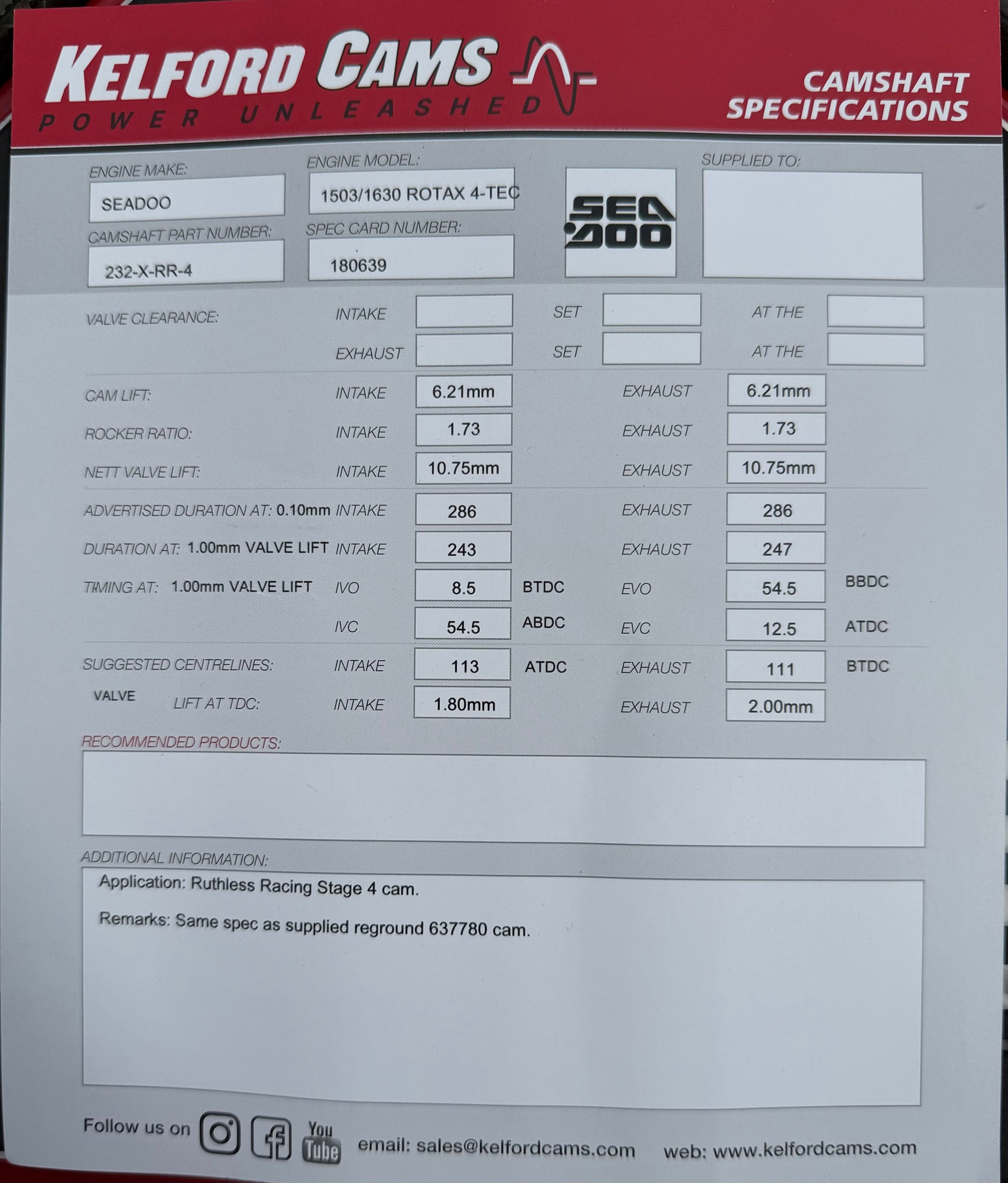 Ruthless Racing Spec 232-X Stage 4 | Sea-Doo - Billet Racing Camshaft by KELFORD CAMS